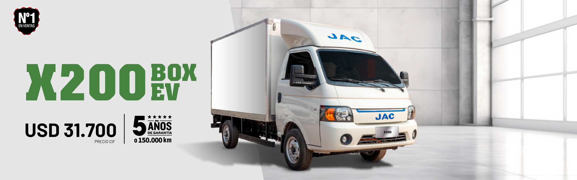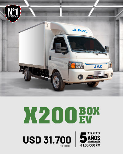 CARACTERÍSTICAS La JAC X200 EV BOX ofrece una autonomía de hasta 200 km y está impulsada por un motor 100% eléctrico alimentado por una batería de litio con garantía de 8 años o 150.000 km.